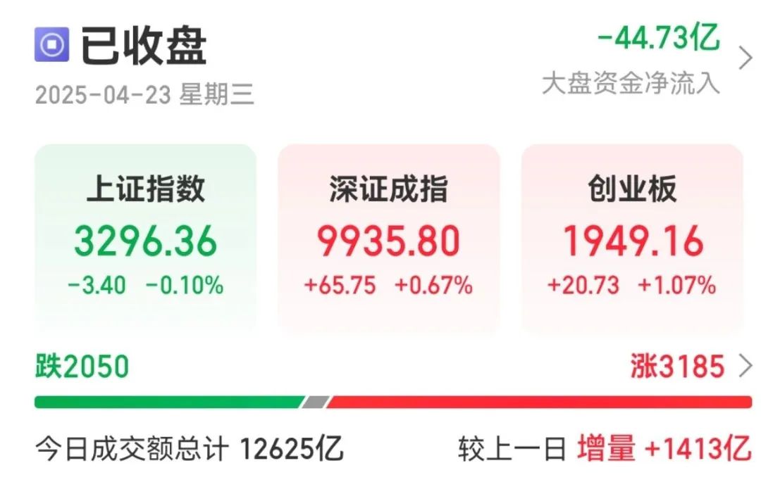 今天,A股题材快速轮动。截至收盘,沪指跌0.10%,深证成指涨0.67%,创业板指涨1.07%。全市场超3100只个股上涨。部分高位股大幅走低,红宝丽、国芳集团等跌停。